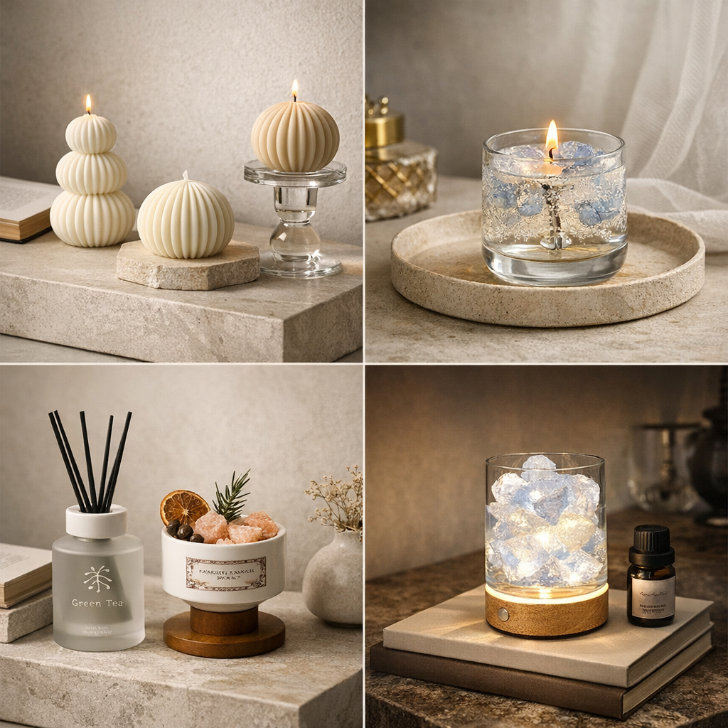 Choose from a variety of products including soy wax candles, reed diffusers, room sprays, and other home fragrance items.